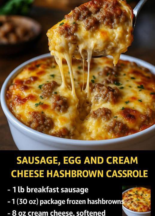 Sausage, Egg, and Cream Cheese Hashbrown Casserole